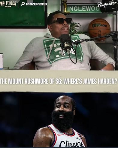 主持人笑称:“抱歉,詹姆斯(哈登),你没让保罗(皮尔斯)在你的体系打球。”