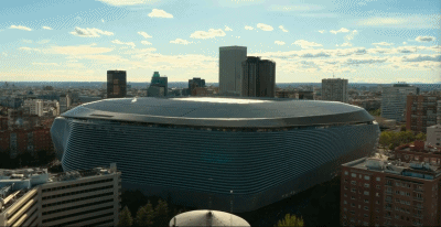 比赛即将开始,转播镜头给到新伯纳乌