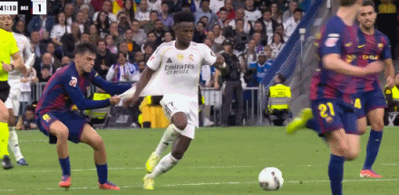 第42分钟,佩德里奋力拉拽维尼修斯球衣,得到一张黄牌